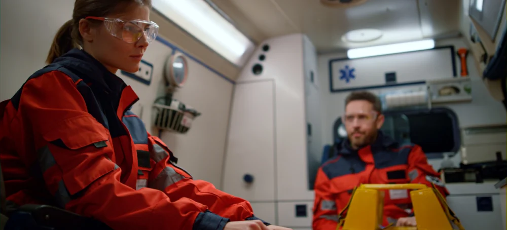 La ambulancia va dotada con dos técnicos en emergencias sanitarias que han sido debidamente formados con cursos de especialización en el manejo del paciente psiquiátrico. Además de la equipación propia del TES, como medida de seguridad, la ambulancia dispone de guantes, chalecos, escudos y cascos protectores, por si la violencia es extrema y no ha podido ser reducido el paciente a la llegada de la ambulancia por la autoridad competente. Estas indicaciones pueden parecer exageradas, pero existen pacientes verdaderamente peligrosos, ya sea por el efecto del consumo de drogas o debido a patologías psiquiátricas con componentes violentos implícitos. Lo que se pretende es garantizar las seguridad del propio paciente, intervinientes y de los técnicos en emergencias que reducen, inmovilizan y trasladan al afectado por enfermedad de salud mental.